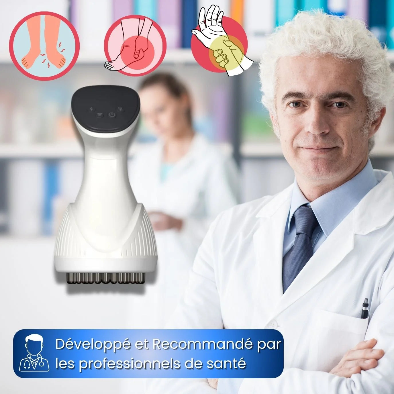 Grâce à sa technologie innovante et à sa fonction chauffante, le masseur à ondes de choc OrthoMasseur™ HappyFeet traite naturellement la cause de votre douleur.
